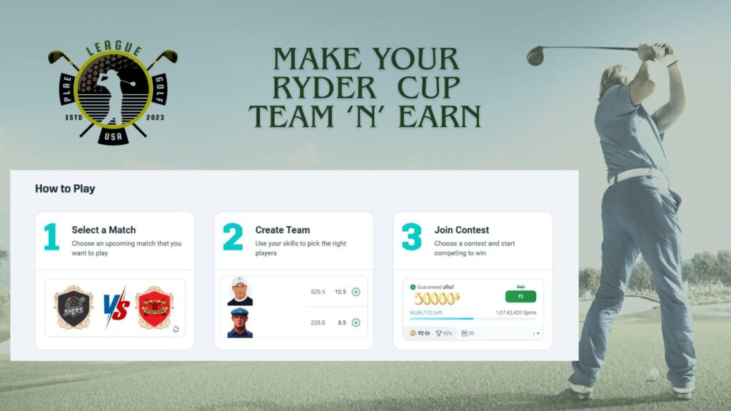 Select your favourite player, click on a match, create your PLae Golf and join any, head-to-head or mega contests.